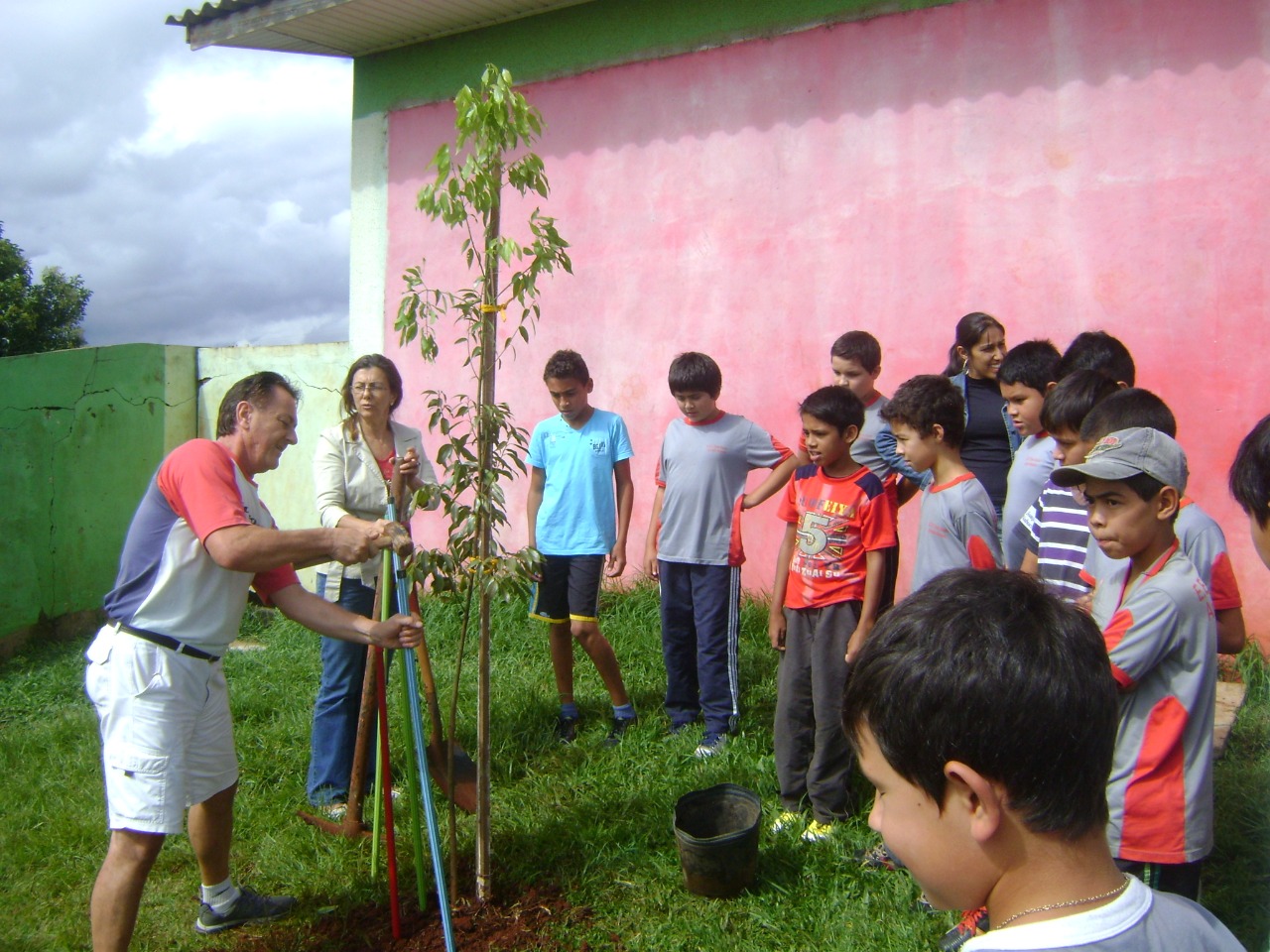 Continua o embelezamento da escola, agora com plantio de árvores doadas pelos professores, uma árvore foi doada pela diretora Ivone, outra pelo professor José Paulo e uma pela professora Alzira.